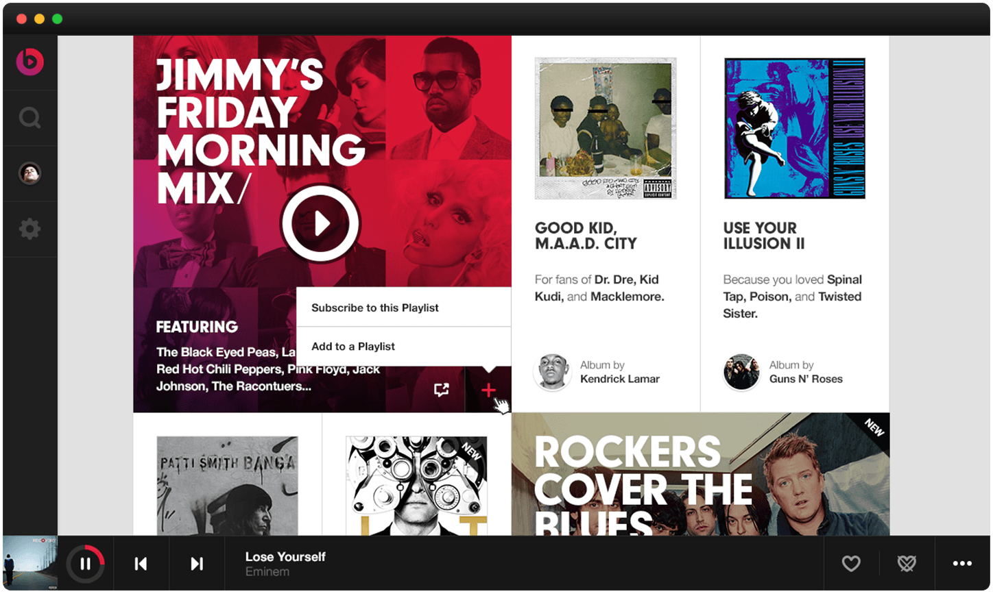 Beats Music was a music streaming service with heart. We worked on it from early 2013 to late 2014 before getting acquired by Apple.